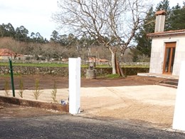 Asfaltado en la entrada de la finca, limpieza del terreno y relleno con grava al frente de la casa, realización de escalera de acceso a la vivienda y maceteras con traviesas de tren y acondicionamiento del jardín.